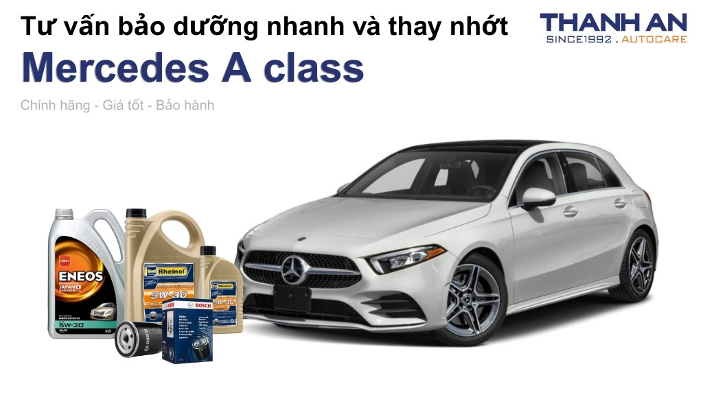 - Xe Mercedes A Class thay nhớt hãng hay nhớt ngoài tốt hơn? Tại hãng và tại Thanh An Autocare đều sử dụng các dòng nhớt đạt chuẩn hãng (OEM). Tuy nhiên, khi thay nhớt cho xe Mercedes A Class tại Thanh An Autocare sẽ tiết kiệm chi phí dịch vụ hơn đáng kể so với hãng nhưng vẫn đảm bảo quy trình thay nhớt chuyên nghiệp chuẩn xe sang.