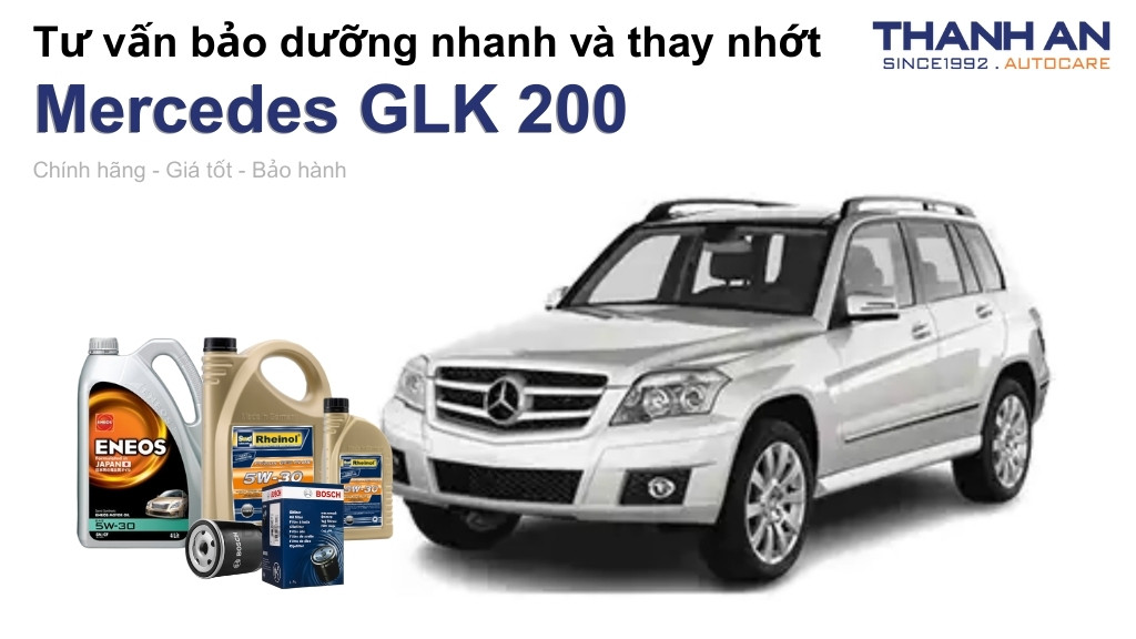 - Xe Mercedes GLK 200 thay nhớt hãng hay nhớt ngoài tốt hơn? Tại hãng và tại Thanh An Autocare đều là nhớt chính hãng nhưng khi thay nhớt cho xe Mercedes GLK 200 tại Thanh An Autocare sẽ tiết kiệm chi phí hơn so với hãng nhưng vẫn đảm bảo quy trình thay nhớt chuyên nghiệp.