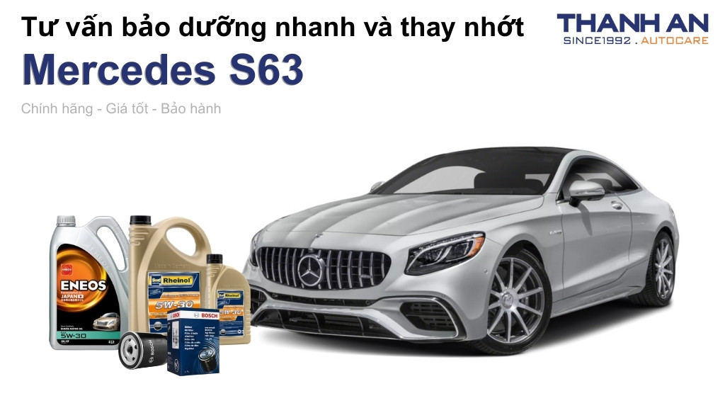 - Xe Mercedes S63 thay nhớt hãng hay nhớt ngoài tốt hơn? Tại hãng và tại Thanh An Autocare đều sử dụng nhớt chính hãng đạt chuẩn Mercedes. Tuy nhiên, khi thay nhớt cho xe Mercedes S63 tại Thanh An Autocare sẽ tiết kiệm chi phí hơn đáng kể so với hãng nhưng vẫn đảm bảo quy trình thay nhớt chuyên nghiệp.