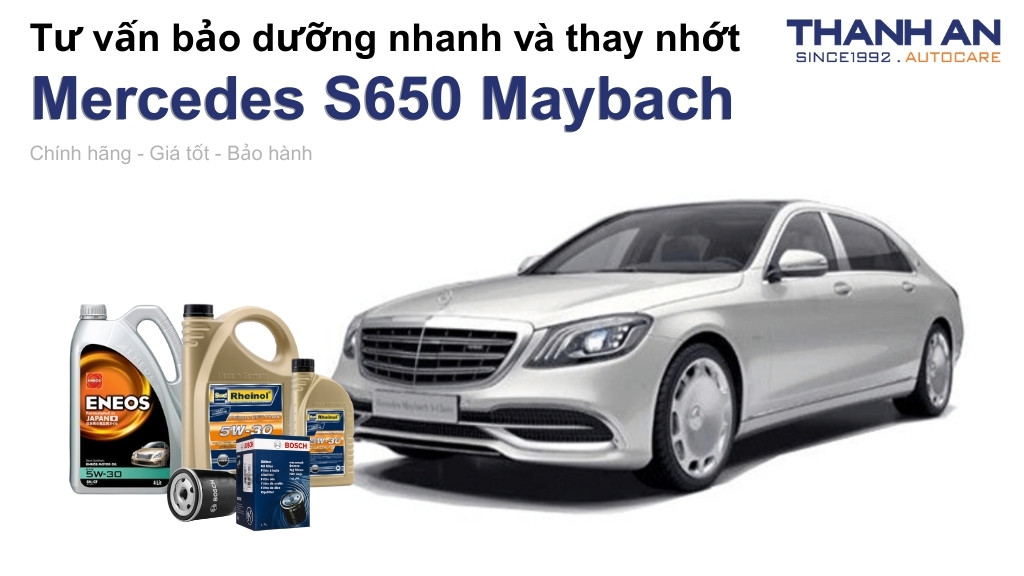 - Xe Mercedes S650 Maybach thay nhớt hãng hay nhớt ngoài tốt hơn? Tại hãng và Thanh An Autocare đều sử dụng nhớt đạt chuẩn Mercedes. Tuy nhiên, thay nhớt tại Thanh An Autocare giúp bạn tiết kiệm chi phí dịch vụ đáng kể và thời gian chờ đợi linh hoạt hơn, trong khi vẫn đảm bảo quy trình chuẩn quốc tế.