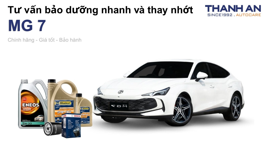 Động cơ của MG 7 sử dụng công nghệ tăng áp (Turbo), do đó yêu cầu về khả năng chịu nhiệt và bôi trơn của dầu nhớt khắt khe hơn động cơ hút khí tự nhiên. Thanh An Autocare khuyên bạn nên sử dụng các dòng nhớt tổng hợp toàn phần từ thương hiệu Rheinol (Đức) hoặc ENEOS (Nhật Bản).