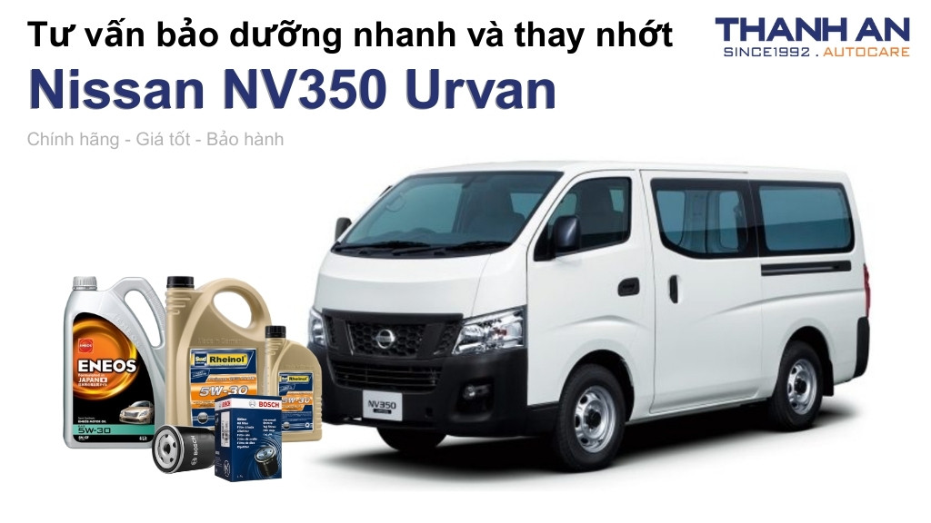 Động cơ Diesel trên Nissan NV350 Urvan thường xuyên phải chịu tải trọng lớn và hoạt động ở nhiệt độ cao nên cần loại nhớt có khả năng chịu cực áp tốt. Thanh An Autocare khuyến nghị khách hàng sử dụng các thương hiệu dầu nhớt danh tiếng toàn cầu như Rheinol và ENEOS. Hai dòng sản phẩm này sở hữu hệ phụ gia tẩy rửa mạnh giúp làm sạch muội than đặc trưng của máy dầu và bảo vệ Turbo tăng áp.