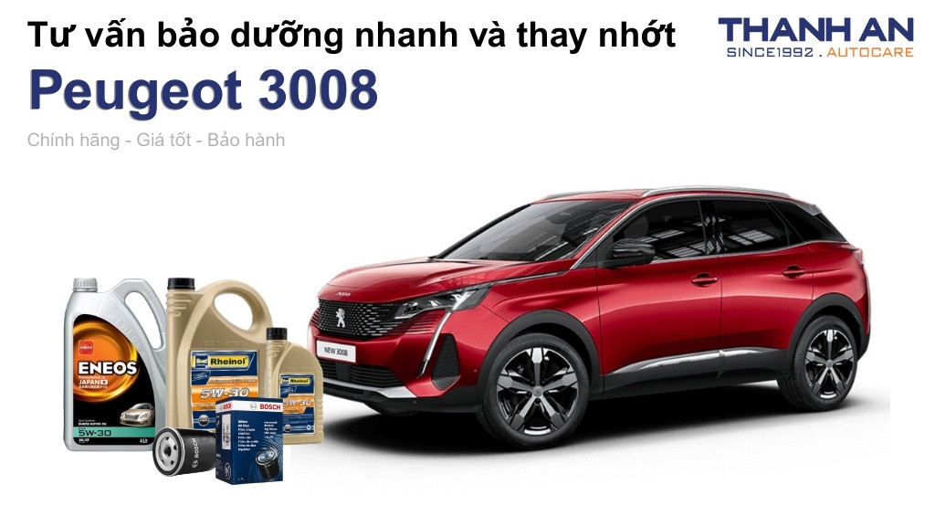 Bạn đang sở hữu chiếc SUV đậm chất Pháp Peugeot 3008 nhưng băn khoăn về quy trình bảo dưỡng động cơ 1.6L Turbo High Pressure (THP)? Động cơ tăng áp luôn đòi hỏi chất lượng bôi trơn khắt khe để duy trì độ bốc và tuổi thọ bền bỉ. Hãy cùng Thanh An Autocare tìm hiểu chi tiết quy trình thay nhớt xe Peugeot 3008 chuẩn kỹ thuật giúp xế yêu vận hành êm ái trên mọi cung đường.