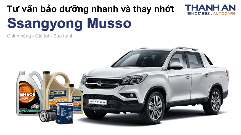 Bạn đang sở hữu chiếc SUV Ssangyong Musso mạnh mẽ và muốn động cơ luôn vận hành bền bỉ trên mọi địa hình? Đã đến lúc xe cần được thay thế lớp dầu bôi trơn cũ kỹ để phục hồi hiệu suất tối ưu sau thời gian dài sử dụng. Hãy cùng Thanh An Autocare tìm hiểu giải pháp thay nhớt xe Ssangyong Musso chuẩn kỹ thuật giúp bạn yên tâm trên mọi cung đường.
