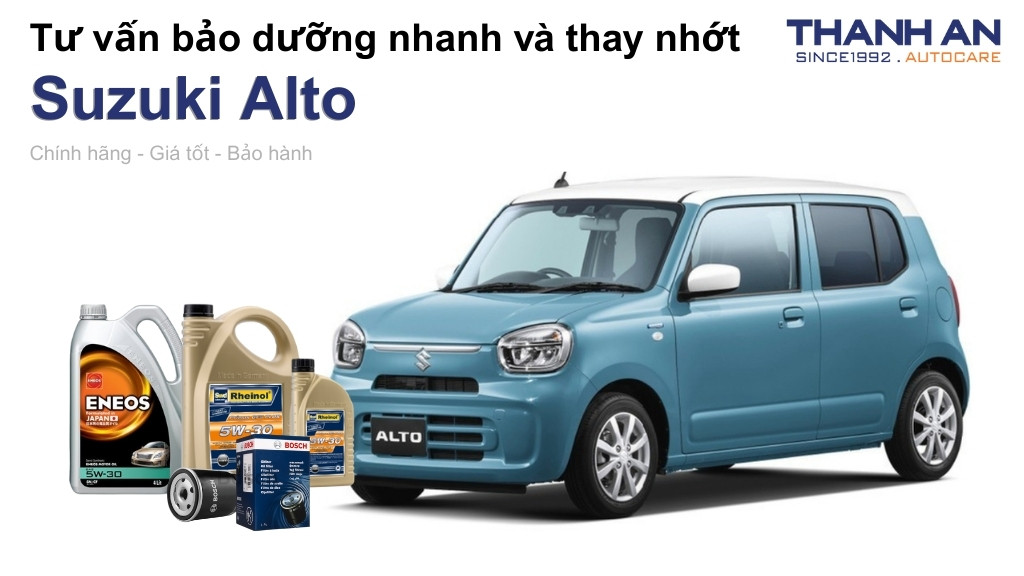- Xe Suzuki Alto thay nhớt hãng hay nhớt ngoài tốt hơn? Cả hai đều tốt nếu dùng hàng chính hãng. Tuy nhiên, thay nhớt cho xe Suzuki Alto tại Thanh An Autocare giúp bạn tiết kiệm chi phí nhưng vẫn đảm bảo quy trình chuyên nghiệp và sử dụng nhớt cao cấp.