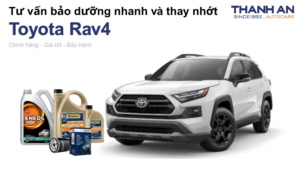 Bạn đang sở hữu chiếc SUV Toyota RAV4 mạnh mẽ và muốn động cơ luôn duy trì sức mạnh vượt trội? Bảo dưỡng định kỳ là yếu tố kỹ thuật then chốt giúp xe vận hành êm ái và kéo dài tuổi thọ các chi tiết máy. Hãy cùng Thanh An Autocare tìm hiểu chi tiết quy trình thay nhớt xe Toyota RAV4, từ dung tích chính xác đến loại dầu tối ưu nhất cho xế yêu của bạn.