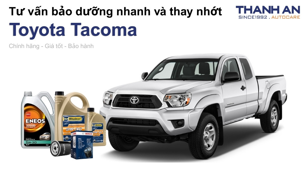 Toyota Tacoma luôn là biểu tượng của sức mạnh và sự bền bỉ trong phân khúc xe bán tải, sẵn sàng chinh phục mọi địa hình khắc nghiệt. Tuy nhiên, để duy trì "trái tim" động cơ V6 hoặc Turbo luôn mạnh mẽ, chủ xe cần tuân thủ nghiêm ngặt lịch trình bảo dưỡng định kỳ. Hãy cùng Thanh An Autocare tìm hiểu giải pháp thay nhớt cho xe Toyota Tacoma chuẩn kỹ thuật giúp tối ưu hóa công suất vận hành.