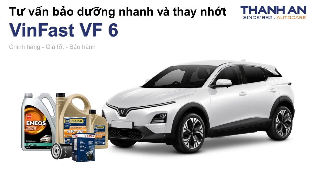 VinFast VF 6 là mẫu B-SUV điện thông minh sở hữu thiết kế thời thượng và khả năng vận hành linh hoạt, chinh phục nhiều khách hàng trẻ ngay từ khi ra mắt. Mặc dù là xe điện không sử dụng động cơ đốt trong, nhưng hệ thống truyền động vẫn cần được chăm sóc đặc biệt để duy trì hiệu suất tối ưu. Hãy cùng Thanh An Autocare tìm hiểu chi tiết về hạng mục thay nhớt xe VinFast VF 6 (dầu hộp số/dầu cầu) để đảm bảo xế yêu luôn vận hành êm ái và bền bỉ.