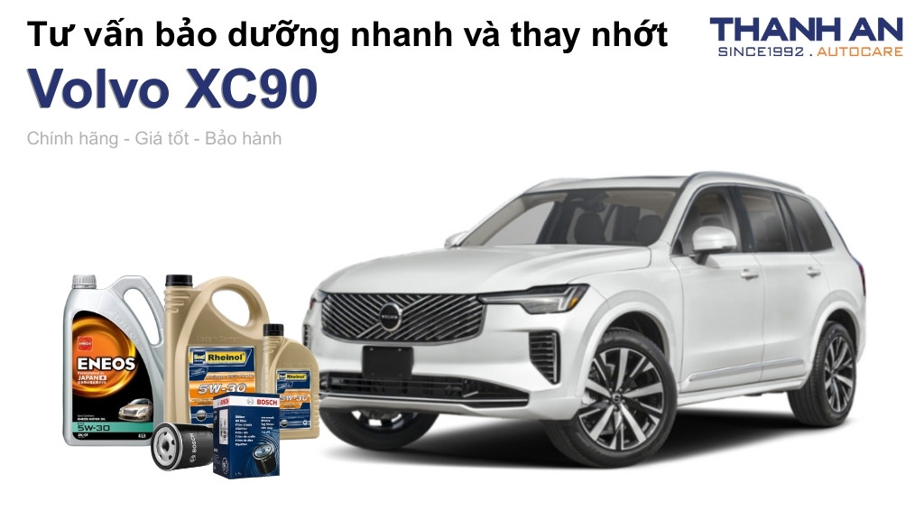Volvo XC90 được mệnh danh là mẫu SUV an toàn hàng đầu thế giới với khối động cơ Drive-E vận hành tinh tế và mạnh mẽ. Để duy trì hiệu suất đỉnh cao này, chủ xe cần thực hiện thay nhớt xe Volvo XC90 đúng định kỳ với các sản phẩm đạt chuẩn khắt khe từ nhà sản xuất. Hãy cùng Thanh An Autocare tìm hiểu giải pháp chăm sóc động cơ toàn diện giúp xế sang của bạn luôn bền bỉ theo thời gian.
