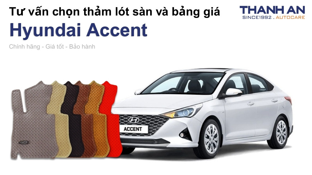 - Ưu điểm: Độ bền trên 10 năm, không mùi độc hại, chống nước tuyệt đối, dễ vệ sinh, thiết kế ôm khít sàn xe Accent.