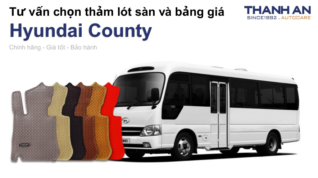 Bạn đang vận hành chiếc xe khách Hyundai County 29 chỗ nhưng sàn xe luôn trong tình trạng lấm lem bùn đất và ám mùi hôi khó chịu? Đối với dòng xe dịch vụ, khoang nội thất sạch sẽ chính là yếu tố tiên quyết để giữ chân hành khách và nâng cao hình ảnh chuyên nghiệp của nhà xe. Hãy cùng Thanh An Autocare tìm hiểu giải pháp thảm lót sàn ô tô cao cấp, giúp bác tài vệ sinh xe nhanh chóng và bảo vệ sàn xe bền bỉ suốt nhiều năm vận hành.