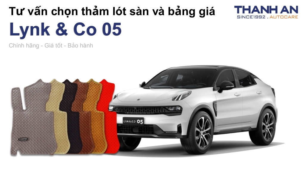 Thảm lót sàn xe Lynk & Co 05 từ thương hiệu KATA chính là mảnh ghép hoàn hảo giúp bảo vệ toàn diện và tôn lên vẻ đẹp hiện đại cho chiếc Coupe SUV của bạn. Đầu tư một bộ thảm chất lượng là cách thông minh để giữ gìn vệ sinh, đảm bảo an toàn và sức khỏe cho mọi hành khách trên xe. Hy vọng những chia sẻ của Thanh An Autocare về các dòng thảm lót sàn sẽ trở nên hữu ích với bạn, giúp bạn tìm ra giải pháp thay thế bộ thảm cũ kỹ một cách ưng ý nhất. Để được hỗ trợ tư vấn màu sắc và xem mẫu trực tiếp, hãy liên hệ ngay qua số hotline để được đội ngũ chuyên viên phục vụ một cách nhanh chóng. Đừng quên đánh giá và theo dõi nhiều bài viết thú vị khác nhé!