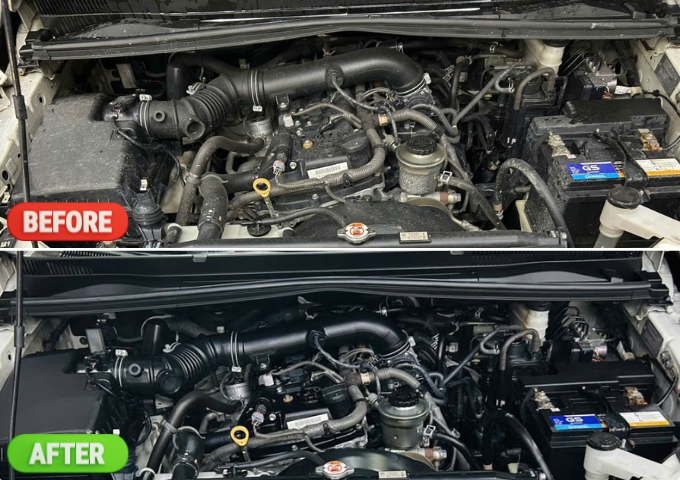 - Tăng tính thẩm mỹ, giữ giá trị xe lâu dài Vệ sinh khoang máy không phải để “cho đẹp”, mà là một bước chăm sóc kỹ thuật giúp bảo vệ và duy trì tình trạng vận hành ổn định cho chiếc xe.
