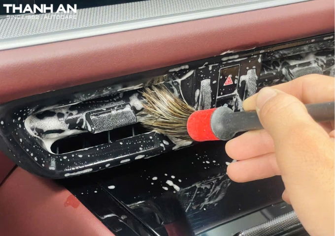 - Làm sạch các mảng nhựa/da/nỉ trên tappi cửa, tay nắm, khu vực gần kính - nơi hay bám dấu tay và bụi.