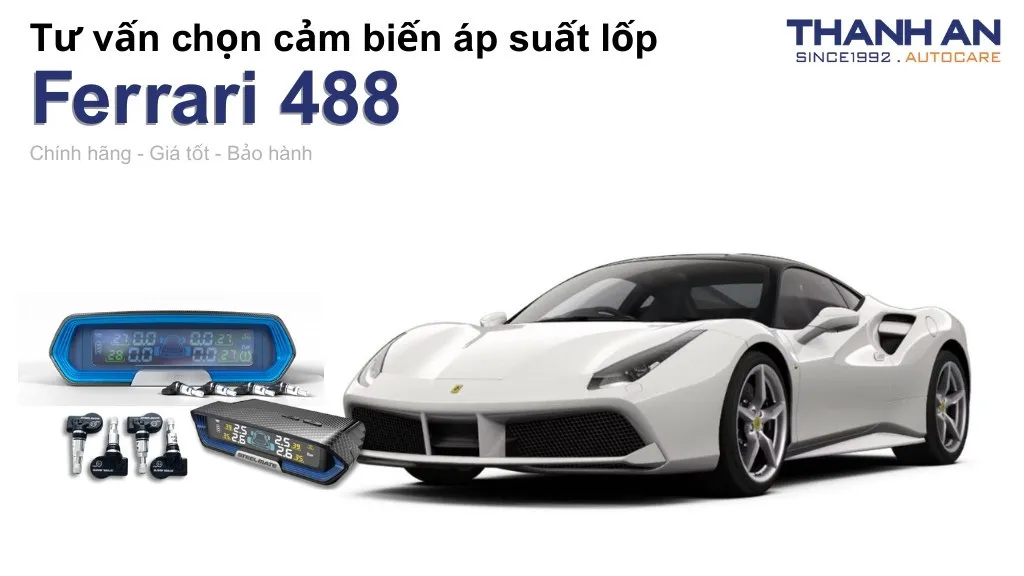 Cảm biến áp suất lốp rất đa dạng về chủng loại và giá cả. Tại Thanh An, chúng tôi ưu tiên tư vấn dòng cảm biến van trong cho xe Ferrari 488, bởi độ chính xác và tuổi thọ vượt trội so với loại van ngoài. Đây cũng là loại phổ biến nhất hiện nay.