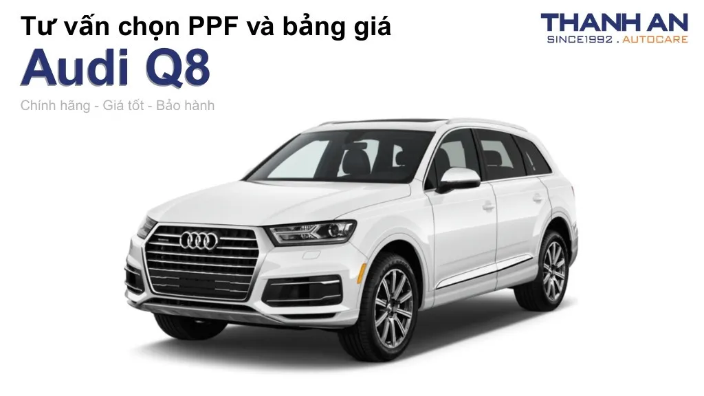 Dán PPF cho xe Audi Q8 là một quyết định đầu tư thông minh, giúp bảo vệ lớp sơn zin, giữ vững giá trị và vẻ đẹp thẩm mỹ cho chiếc xe của bạn. Lớp phim không chỉ chống trầy xước mà còn tăng thêm độ bóng, giúp xế cưng của bạn luôn nổi bật. Để được tư vấn chi tiết về các gói dịch vụ và thương hiệu phim phù hợp, hãy liên hệ ngay với Thanh An Autocare. Chúng tôi luôn sẵn sàng đồng hành cùng bạn trên chặng đường chăm sóc và bảo vệ xế cưng một cách chuyên nghiệp nhất.