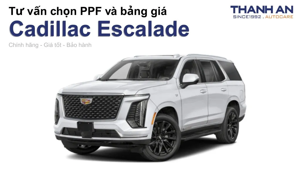 Bạn đang sở hữu mẫu SUV hạng sang Cadillac Escalade và muốn giữ gìn vẻ đẹp uy nghi, bóng bẩy của nó trước mọi tác động từ môi trường? Dán PPF xe Cadillac Escalade là giải pháp bảo vệ sơn tiên tiến nhất giúp ngăn chặn trầy xước và duy trì giá trị nguyên bản cho xế hộp. Hãy cùng Thanh An Autocare tìm hiểu chi tiết về dịch vụ này để có phương án chăm sóc chiếc "khủng long Mỹ" của bạn một cách hoàn hảo nhất.