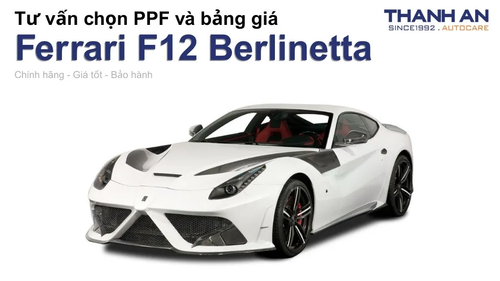 Nhằm bảo vệ nội và ngoại thất xe khỏi trầy xước, phai màu, dán PPF ô tô Ferrari F12 Berlinetta là giải pháp hiệu quả. Bạn muốn dán PPF cho chiếc Ferrari F12 Berlinetta của mình nhưng không biết PPF nào sẽ phù hợp? Trong bài viết này, Thanh An sẽ cung cấp cho bạn toàn bộ những kiến thức cần biết về dán PPF xe Ferrari F12 Berlinetta và mẹo để chọn được loại PPF tốt nhất.