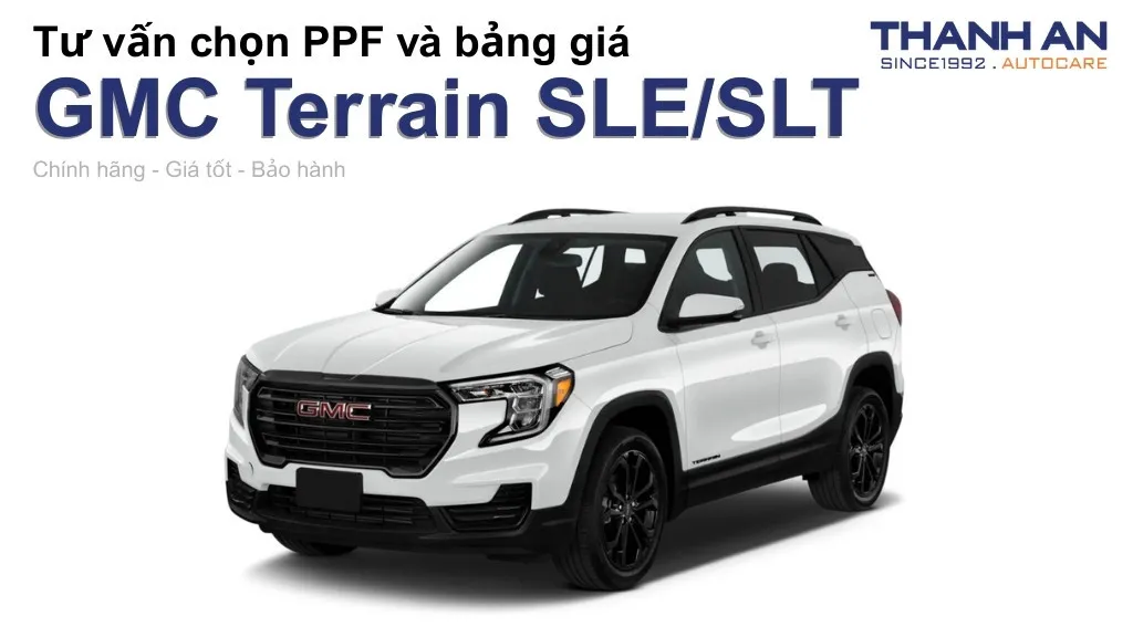 Nhằm bảo vệ nội và ngoại thất xe khỏi trầy xước, phai màu, dán PPF ô tô GMC Terrain SLE_SLT là giải pháp hiệu quả. Bạn muốn dán PPF cho chiếc GMC Terrain SLE_SLT của mình nhưng không biết PPF nào sẽ phù hợp? Trong bài viết này, Thanh An sẽ cung cấp cho bạn toàn bộ những kiến thức cần biết về dán PPF xe GMC Terrain SLE_SLT và mẹo để chọn được loại PPF tốt nhất.
