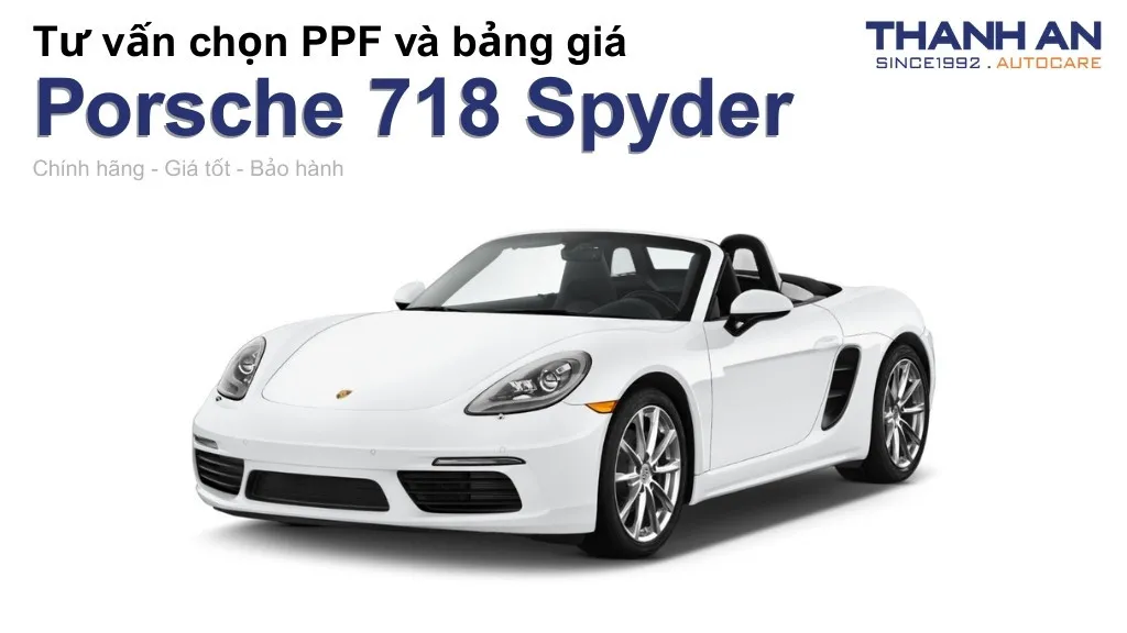Bảng giá dán PPF xe ô tô Porsche 718 Spyder vô cùng đa dạng, đầu tư vào PPF cao cấp giúp cách nhiệt vượt trội, bảo vệ ngoại thất và tăng cường độ bền của sơn xe. Dưới đây là chi tiết!