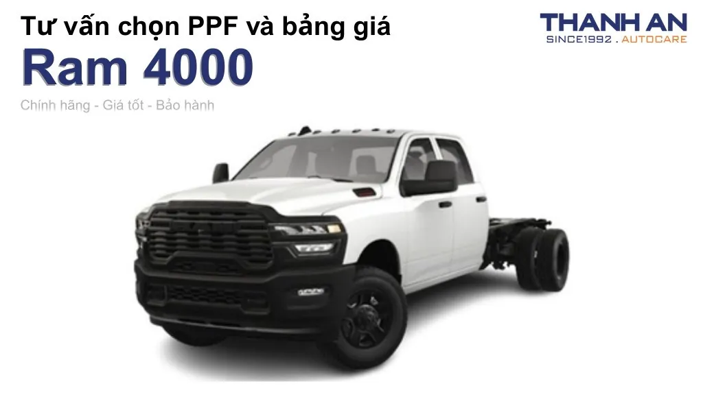 Nhằm bảo vệ nội và ngoại thất xe khỏi trầy xước, phai màu, dán PPF ô tô Ram 4000 là giải pháp hiệu quả. Bạn muốn dán PPF cho chiếc Ram 4000 của mình nhưng không biết PPF nào sẽ phù hợp? Trong bài viết này, Thanh An sẽ cung cấp cho bạn toàn bộ những kiến thức cần biết về dán PPF xe Ram 4000 và mẹo để chọn được loại PPF tốt nhất.