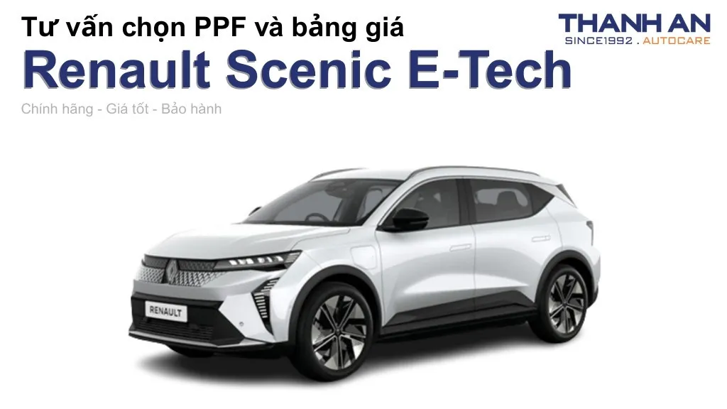 Bạn đang sở hữu mẫu xe điện đình đám Renault Scenic E-Tech với thiết kế mang đậm hơi thở tương lai và muốn gìn giữ vẻ đẹp ấy mãi theo thời gian? Dán PPF xe Renault Scenic E-Tech tại Thanh An Autocare chính là giải pháp bảo vệ sơn xe tối ưu, giúp lớp áo ngoài luôn bóng bẩy và không tì vết. Hãy cùng chúng tôi khám phá chi tiết về công nghệ phim bảo vệ sơn (Paint Protection Film) hiện đại này để có sự đầu tư xứng đáng cho chiếc xế hộp cưng của mình.