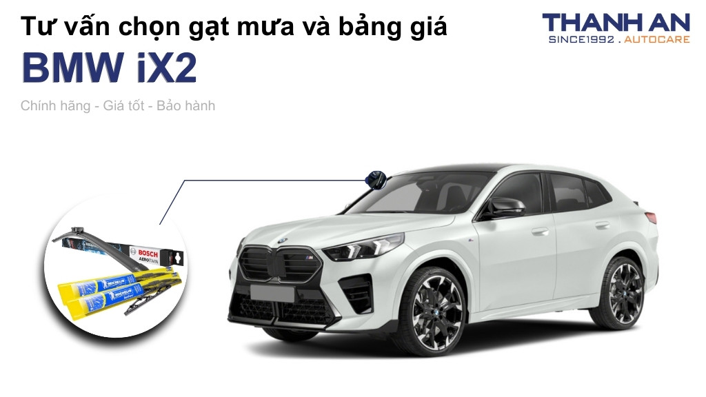 Gạt mưa xe BMW iX2 đóng vai trò quan trọng trong việc đảm bảo an toàn và trải nghiệm lái xe hoàn hảo. Hy vọng những thông tin chuyên sâu từ Thanh An Autocare đã giúp bạn tự tin lựa chọn sản phẩm phù hợp nhất. Đừng để những cơn mưa làm gián đoạn hành trình đẳng cấp của bạn. Hãy liên hệ với chúng tôi ngay hôm nay để được tư vấn và sở hữu bộ gạt mưa chính hãng chất lượng cao.