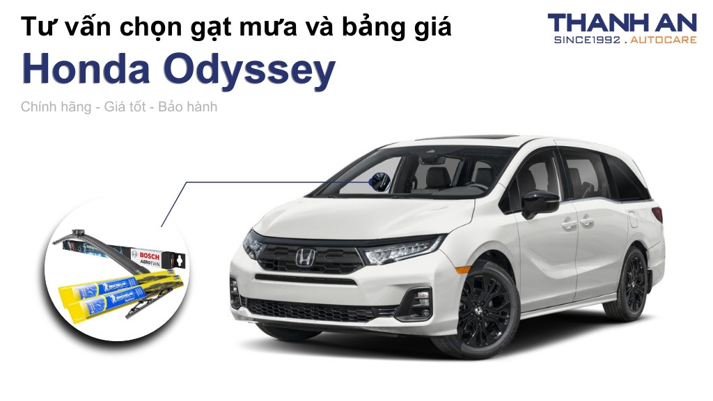 Gạt mưa xe Honda Odyssey đóng vai trò quan trọng trong việc đảm bảo an toàn cho gia đình bạn. Dù chọn Bosch AeroTwin sang trọng hay Michelin Flex Beam đa dụng, bạn hãy luôn ưu tiên hàng chính hãng.