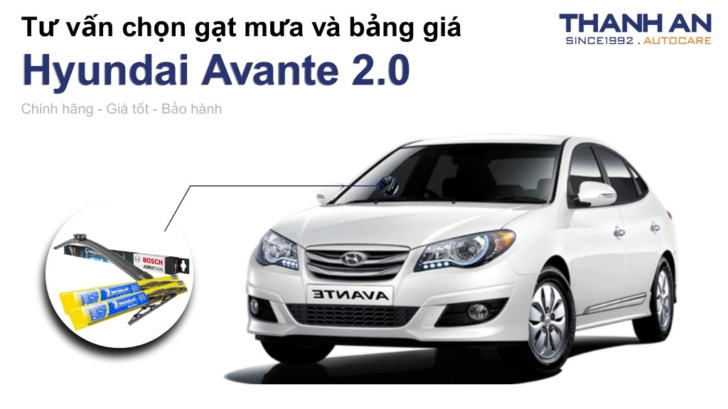 Trang bị một bộ gạt mưa xe Hyundai Avante 2.0 chất lượng cao là giải pháp hoàn hảo để bảo vệ tầm nhìn. Quá trình kiểm tra và nâng cấp định kỳ góp phần duy trì vẻ đẹp sang trọng và sự an toàn cho chiếc xe của bạn. Thanh An Autocare luôn sẵn sàng cung cấp những sản phẩm chính hãng bền bỉ nhất trên thị trường hiện nay. Chúc bạn có những hành trình thật bình an với tầm nhìn quan sát sáng rõ nhất cùng xế cưng.