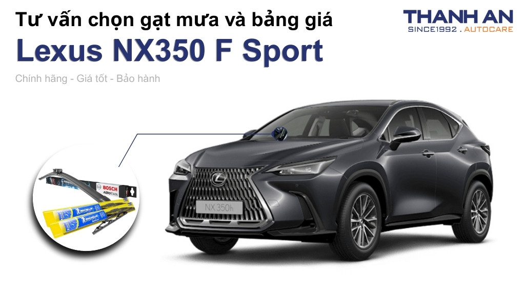 Thanh An Autocare tự hào là địa chỉ uy tín chuyên cung cấp các dòng gạt mưa cao cấp cho xe sang tại TP.HCM. Chúng tôi hiểu rõ từng chi tiết kỹ thuật của dòng xe Lexus NX350 F Sport.