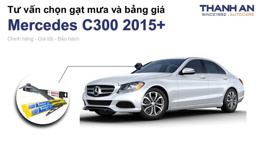 Gạt mưa xe Mercedes C300 2015+ là bộ phận nhỏ nhưng ảnh hưởng trực tiếp đến trải nghiệm lái xe an toàn và đẳng cấp. Việc lựa chọn sản phẩm chính hãng từ Bosch hay Michelin tại Thanh An Autocare giúp bạn an tâm tuyệt đối trên mọi hành trình. Hy vọng bài viết đã cung cấp đầy đủ thông tin cần thiết để bạn chăm sóc xế yêu tốt nhất. Hãy liên hệ ngay với chúng tôi để được tư vấn mã gạt chuẩn xác và nhận ưu đãi hấp dẫn.