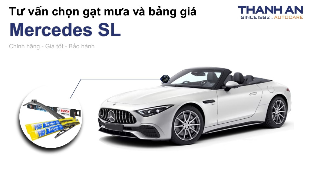 Mercedes-Benz SL-Class là biểu tượng của sự sang trọng và tốc độ, do đó việc đảm bảo tầm nhìn sáng rõ trong mọi điều kiện thời tiết là yếu tố an toàn tối thượng. Thanh An Autocare hiểu rằng chủ xe luôn mong muốn tìm kiếm bộ gạt mưa xe Mercedes SL xứng tầm với đẳng cấp của chiếc xe. Chúng tôi sẽ mang đến những thông tin tư vấn chuyên sâu giúp bạn chọn được sản phẩm chính hãng ưng ý nhất.