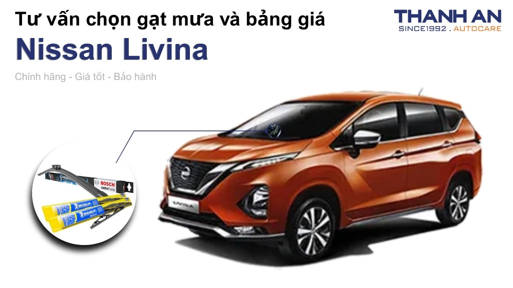 Thanh An Autocare chuyên cung cấp các dòng gạt mưa chính hãng cho xe Nissan Livina tại TP.HCM và giao hàng toàn quốc. Chúng tôi cam kết sản phẩm đúng thông số kỹ thuật, lắp đặt vừa zin và chế độ bảo hành rõ ràng.