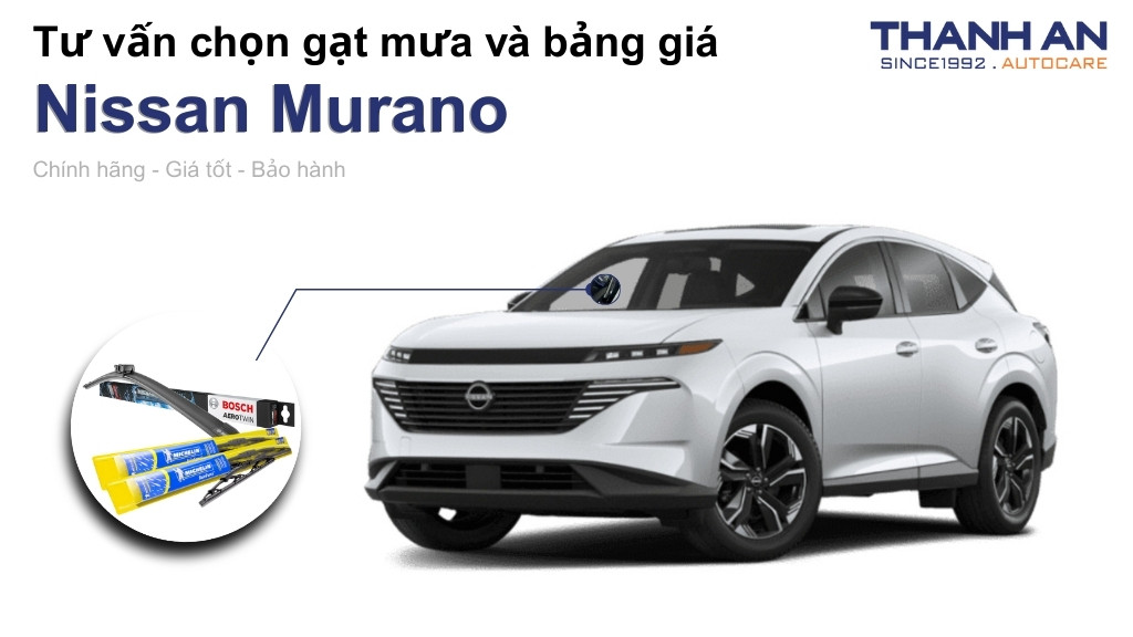 Bạn đang tìm kiếm giải pháp giúp kính lái chiếc crossover mạnh mẽ Nissan Murano luôn trong veo bất chấp những cơn mưa xối xả? Một bộ gạt mưa chất lượng không những trả lại tầm nhìn an toàn mà còn nâng tầm trải nghiệm lái xe êm ái trên mọi hành trình. Hãy cùng Thanh An Autocare khám phá chi tiết về gạt mưa xe Nissan Murano để có sự đầu tư chính xác nhất cho xế cưng.