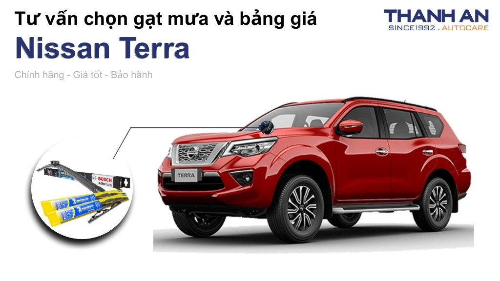 Trang bị một bộ gạt mưa xe Nissan Terra chất lượng là khoản đầu tư nhỏ nhưng mang lại giá trị an toàn lớn. Hy vọng những chia sẻ từ Thanh An Autocare giúp bạn dễ dàng chọn được sản phẩm ưng ý nhất. Hãy liên hệ ngay với chúng tôi để được tư vấn chi tiết và sở hữu những phụ kiện tốt nhất cho chiếc xe của mình.