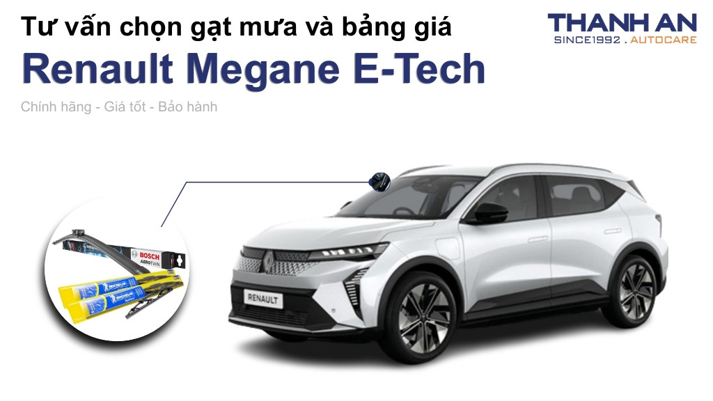 Renault Megane E-Tech mang đến trải nghiệm vận hành êm ái và không gian cabin tĩnh lặng đặc trưng của dòng xe điện hiện đại. Tuy nhiên, chính sự yên tĩnh này khiến tiếng ồn từ cần gạt mưa cũ kỹ trở nên khó chịu hơn bao giờ hết khi di chuyển dưới trời mưa. Hãy cùng Thanh An Autocare tìm hiểu giải pháp gạt mưa xe Renault Megane E-Tech chuẩn xác để lấy lại sự tĩnh lặng và an toàn tuyệt đối cho hành trình của bạn.