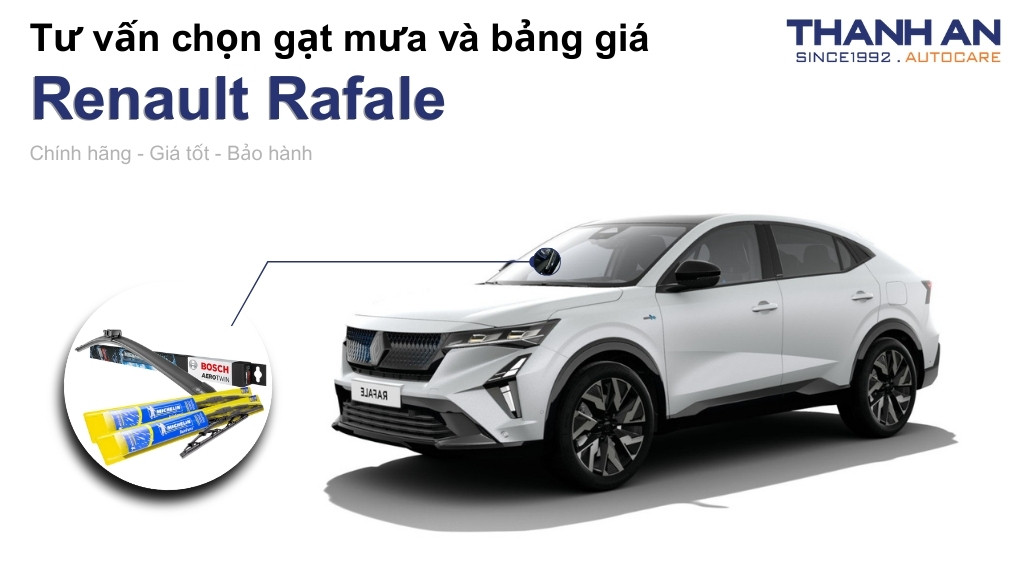 Bạn đang sở hữu mẫu SUV lai Coupe thời thượng Renault Rafale nhưng lại gặp khó khăn khi tìm kiếm phụ kiện thay thế phù hợp? Hệ thống gạt mưa đóng vai trò tiên quyết trong việc đảm bảo tầm nhìn sáng rõ và an toàn tuyệt đối cho mọi hành trình của bạn. Hãy cùng Thanh An Autocare tìm hiểu chi tiết về gạt mưa xe Renault Rafale, từ thông số kỹ thuật chuẩn đến các thương hiệu hàng đầu thế giới ngay sau đây.