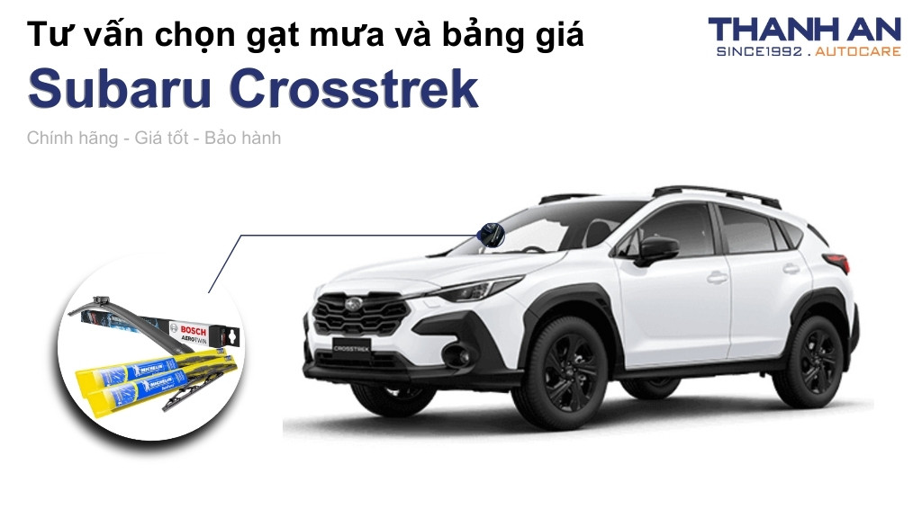 Thanh An Autocare mang đến giải pháp gạt mưa xe Subaru Crosstrek chuyên nghiệp với đầy đủ các thương hiệu hàng đầu thế giới. Chúng tôi cung cấp thông tin chi tiết về kích thước, chất liệu và hướng dẫn lắp đặt chuẩn kỹ thuật. Bạn sẽ dễ dàng tìm được sản phẩm ưng ý giúp những chuyến đi dã ngoại luôn an toàn dưới mọi thời tiết.