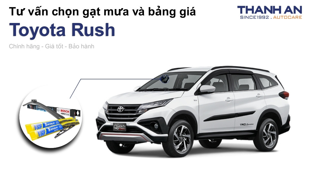 - Phù hợp đối tượng nào: Những chủ xe Toyota Rush muốn nâng cấp từ gạt sắt lên gạt thân mềm với mức giá phải chăng hơn Bosch AeroTwin nhưng chất lượng tương đương.