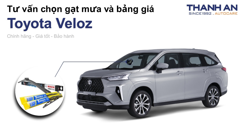 Đối với dòng xe gia đình như Toyota Veloz, việc đầu tư một bộ gạt mưa thương hiệu sẽ đảm bảo an toàn cho những chuyến đi xa. Bosch và Michelin là hai cái tên hàng đầu được các chuyên gia kỹ thuật khuyên dùng nhờ chất lượng ổn định.
