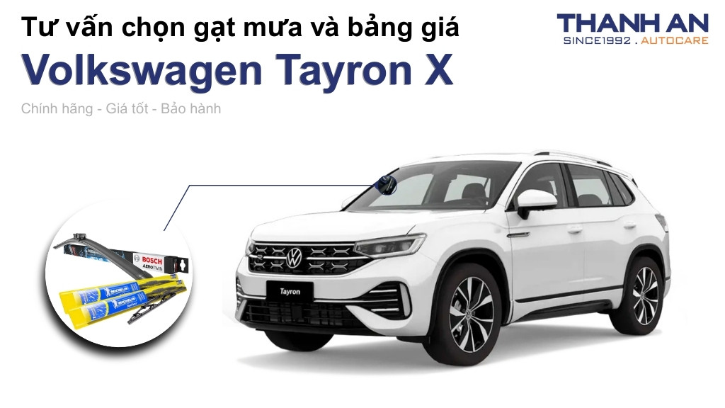 Bạn đang sở hữu chiếc SUV lai Coupe thời thượng nhưng lại cảm thấy bất an mỗi khi di chuyển dưới trời mưa vì tầm nhìn bị hạn chế? Gạt mưa xe Volkswagen Tayron X chất lượng cao chính là giải pháp tối ưu giúp loại bỏ hoàn toàn vệt nước, đảm bảo sự an toàn tuyệt đối cho mọi hành trình. Hãy cùng Thanh An Autocare tìm hiểu chi tiết về thông số kỹ thuật và cách lựa chọn sản phẩm phù hợp nhất cho dòng xe đặc biệt này.