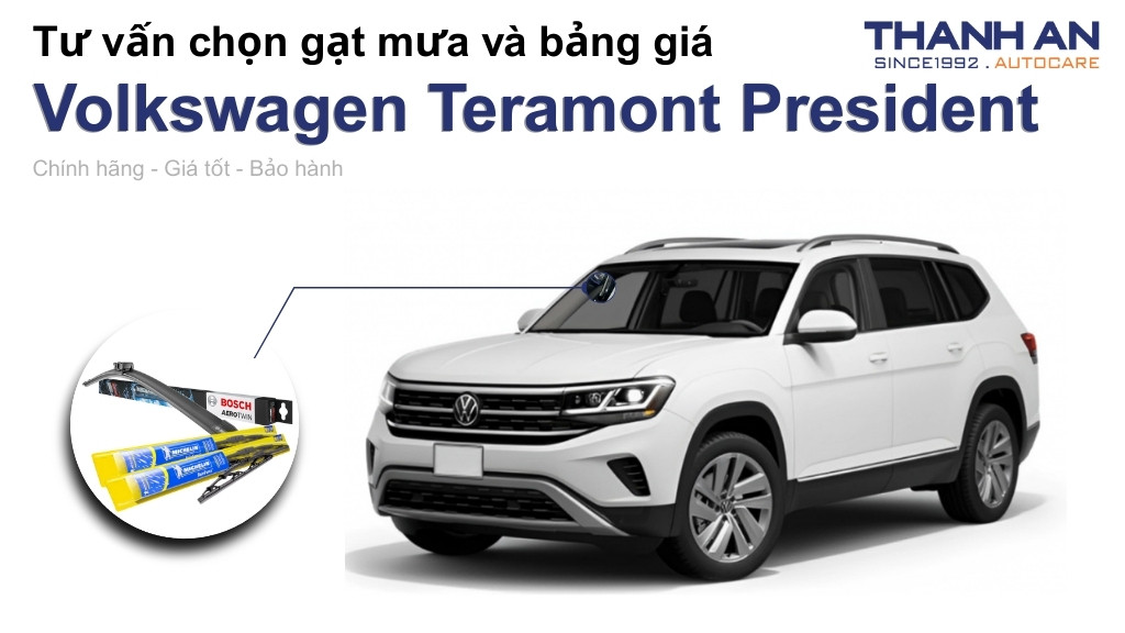 Là mẫu xe SUV Full-size cao cấp, Teramont President đòi hỏi sự khắt khe về tính thẩm mỹ và hiệu suất hoạt động của phụ kiện. Trên thị trường có nhiều loại gạt mưa, nhưng không phải loại nào cũng tương thích hoàn hảo với hệ thống kính lái của dòng xe Đức này.