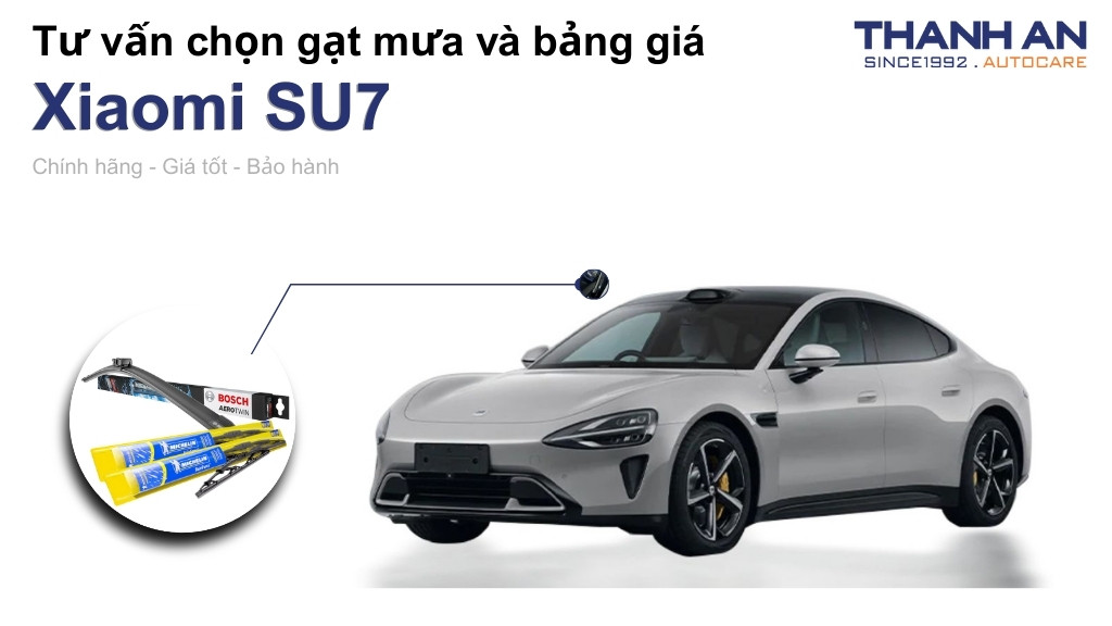Bạn đang sở hữu siêu phẩm xe điện thông minh Xiaomi SU7 và muốn tìm kiếm giải pháp bảo vệ tầm nhìn hoàn hảo nhất? Một cặp gạt mưa chất lượng cao, thiết kế khí động học là yếu tố bắt buộc để đảm bảo tính thẩm mỹ và an toàn tuyệt đối cho chiếc xe công nghệ này. Hãy cùng Thanh An Autocare khám phá các dòng gạt mưa chuyên biệt dành riêng cho Xiaomi SU7 ngay trong bài viết dưới đây.