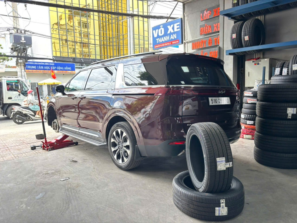 Kia Carnival là mẫu MPV cao cấp được nhiều gia đình và doanh nghiệp tin dùng nhờ thiết kế sang trọng, không gian rộng rãi và khả năng vận hành êm ái. Theo dữ liệu thực tế giai đoạn 2023 – 2025 tại Thanh An Autocare, 100% xe Carnival thay lốp đều sử dụng size tiêu chuẩn 235/55R19 – kích thước phù hợp với các phiên bản Luxury, Premium và Signature của dòng xe này.