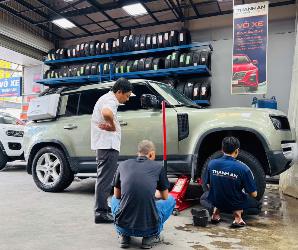 Khách hàng thay lốp xe ô tô tại cửa hàng Thanh An Autocare Quận 7