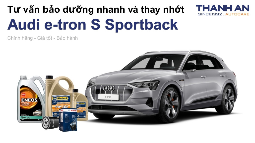 - Xe Audi e-tron S Sportback thay nhớt hãng hay nhớt ngoài tốt hơn? Quan trọng nhất là đúng thông số kỹ thuật. Tại Thanh An Autocare, chúng tôi sử dụng nhớt nhập khẩu từ Đức (quê hương của Audi) với chất lượng tương đương hãng nhưng chi phí tiết kiệm hơn.