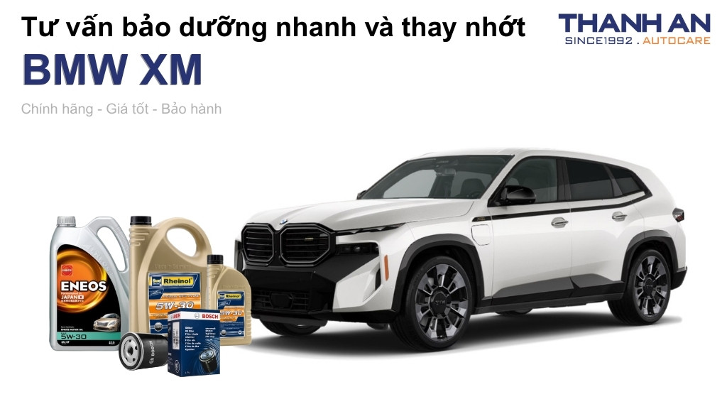 Đối với dòng xe hiệu suất cao như BMW XM, chất lượng dầu nhớt quyết định trực tiếp đến độ bền và khả năng tăng tốc của động cơ. Thanh An Autocare khuyến nghị khách hàng sử dụng các dòng nhớt tổng hợp toàn phần (Fully Synthetic) từ thương hiệu Rheinol (Đức) hoặc ENEOS (Nhật Bản). Hai thương hiệu này đáp ứng hoàn hảo các tiêu chuẩn BMW Longlife khắt khe, giúp màng dầu bền vững ngay cả khi động cơ hoạt động ở vòng tua cực lớn.