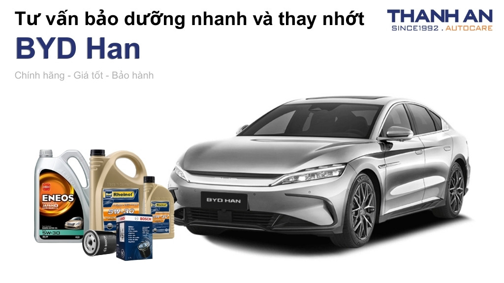 BYD Han là dòng sedan hạng sang chinh phục người dùng bởi công nghệ hiện đại và khả năng vận hành mạnh mẽ. Để duy trì hiệu suất ổn định cho khối động cơ Hybrid (DM-i/DM-p), chủ xe cần chú trọng thay nhớt xe BYD Han đúng định kỳ kỹ thuật. Hãy cùng Thanh An Autocare tìm hiểu chi tiết quy trình bảo dưỡng và các loại nhớt tối ưu nhất cho dòng xe đặc biệt này.
