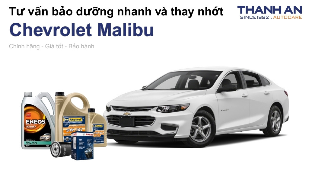 - Xe Chevrolet Malibu thay nhớt hãng hay nhớt ngoài tốt hơn? Tại Thanh An Autocare, chúng tôi sử dụng nhớt chính hãng có phẩm cấp tương đương hoặc cao hơn hãng. Khi thay nhớt cho xe Chevrolet Malibu tại đây, bạn sẽ tiết kiệm chi phí đáng kể so với vào hãng nhưng vẫn đảm bảo quy trình chuyên nghiệp và an toàn.