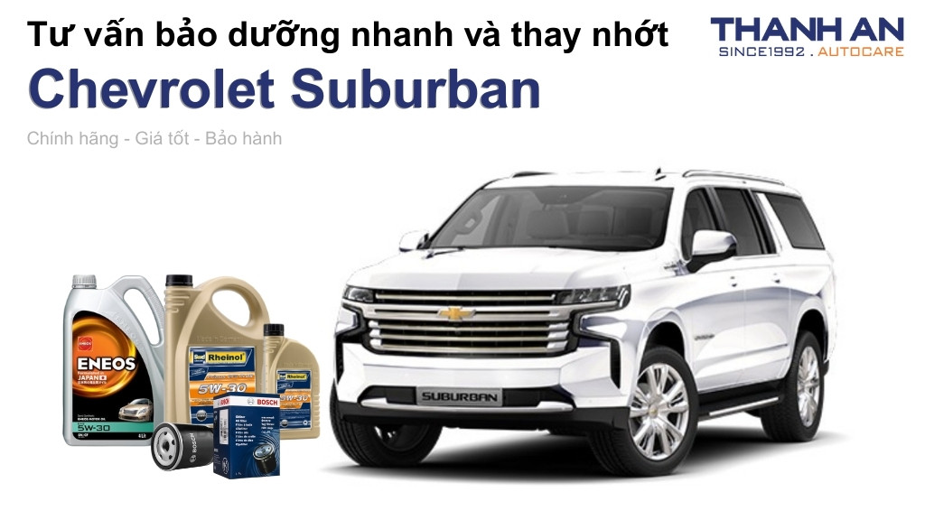 - Xe Chevrolet Suburban thay nhớt hãng hay nhớt ngoài tốt hơn? Thay nhớt tại hãng hay gara ngoài đều tốt nếu bạn chọn đúng loại nhớt chính hãng đạt chuẩn Dexos. Tại Thanh An Autocare, bạn sẽ tiết kiệm chi phí đáng kể so với hãng nhưng vẫn được đảm bảo quy trình chuyên nghiệp và sản phẩm cao cấp.